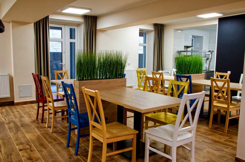 Ein wichtiger Aspekt der von uns konzipierten Küche ist eine praktische Raumkonfiguration, die einen reibungslosen Verlauf technologischer Prozesse ermöglicht. Der Umlauf von Rohstoffen, Halb – und Fertigprodukten findet unter Berücksichtigung geeigneter Temperatur in den Räumen statt.