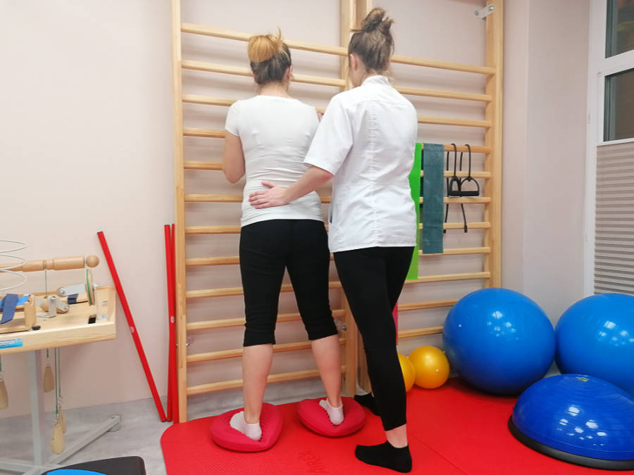 Ein wichtiger Bestandteil der von uns geführten Rehabilitation ist die Kinesiotherapie. Es ist eine Behandlung unter Einsatz verschiedener Bewegungsformen, die darauf abzielen die Funktionsfähigkeit des Körpers und Muskelausdauer zu steigern und Schmerzen im Bereich der Wirbelsäule und in den Gliedern zu reduzieren. Dadurch werden richtige Bewegungsmuster herausgebildet, schlechte Gewohnheiten beseitigt und verlorene Bewegungsfunktionen des Körpers wiederhergestellt. Kinesiotherapie wirkt erfolgreich dem Knochen-, Muskel-, Kreislauf- und Atmungsschwund entgegen, die aus einer langfristigen Unbeweglichkeit des Körpers resultieren. Zur Verfügung der Residenzbewohner steht auch ein Raum für Individuell- und Gruppenübungen. Er ist mit UGUL ausgerüstet (Praxis für Bewegungstraining) d.h. Sprossenwand, Liegen, Matten, Tafeln für manuelle Übungen, Rotor für obere und untere Gliedmaßen, Fahrradergometer, neurologisches Fahrrad als auch zahlreiche Übungsgeräte wie etwa Bälle, Bänder, Balancekissen, Reckstangen.